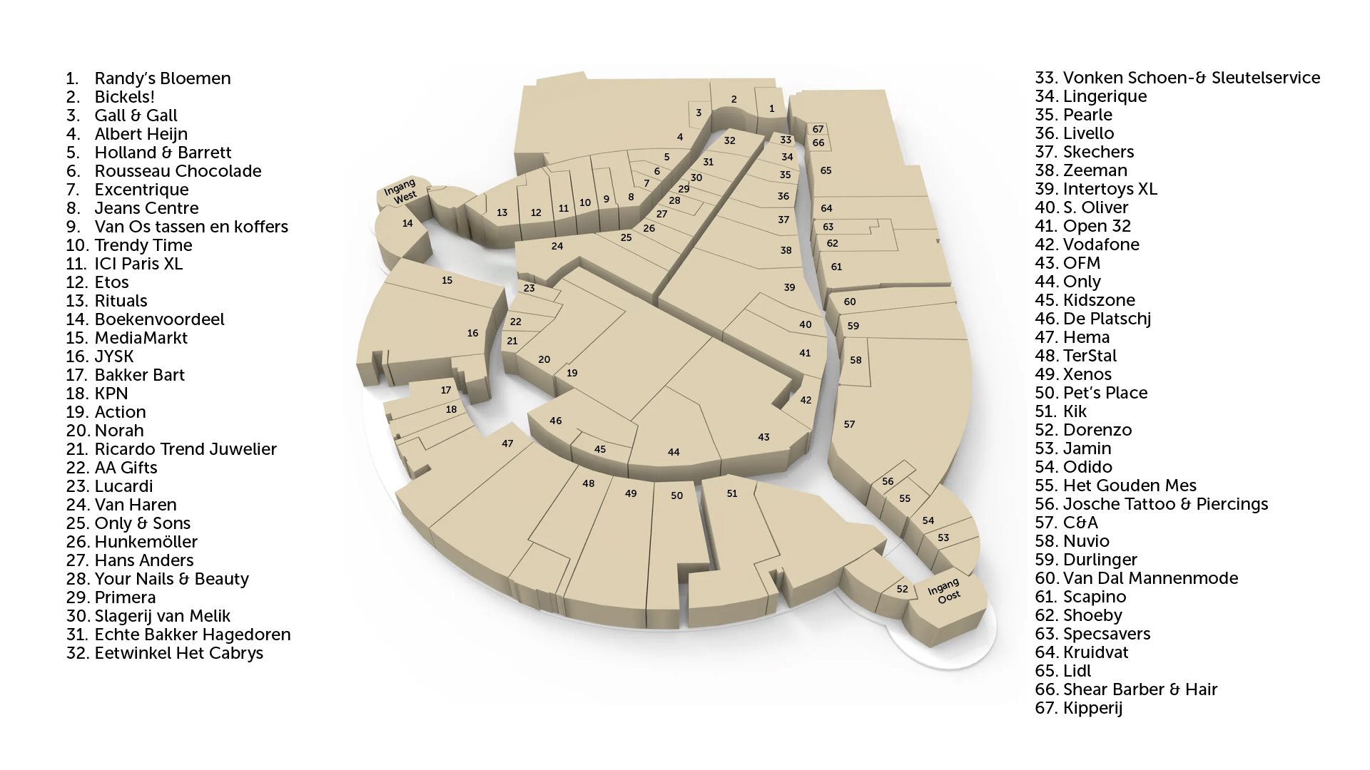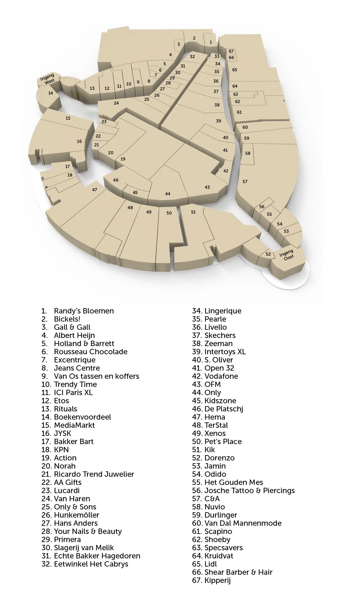 Hieronder vind je een overzicht van de belangrijkste faciliteiten die Winkelcentrum Makado Beek te bieden heeft.
